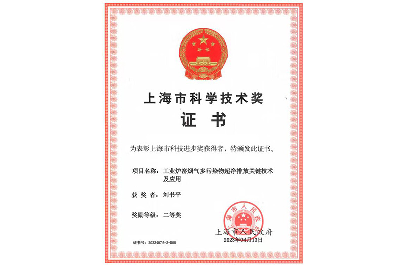 近日,2022年度上海市科學技術獎勵大會在上海展覽中心舉行,表彰為上??萍及l(fā)展作出突出貢獻的科技工作者,由我司劉書平總裁參與,東華大學等單位完成的《工業(yè)爐窯煙氣多污染超凈排放關鍵技術及應用》獲上海市科技進步二等獎。